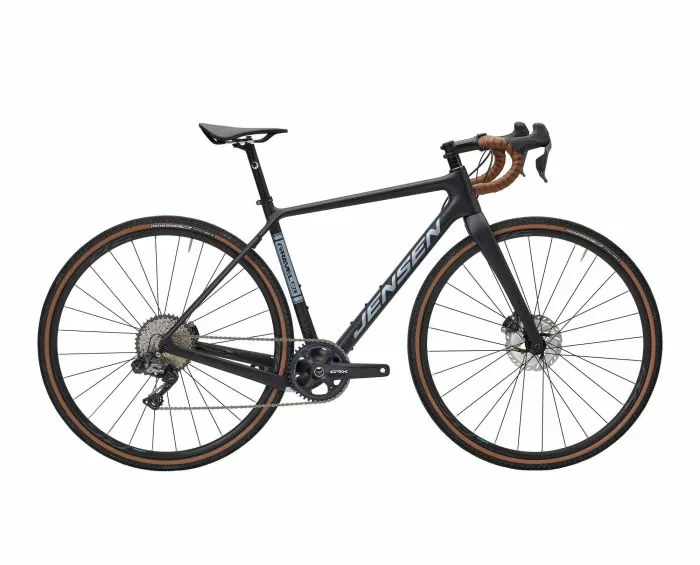 Jensen Gravel SL Carbon kan fås i 3 farver Matsort, Metalic blå og Brun/Kobber og er Danmarks billigste Carbon Gravel bike.