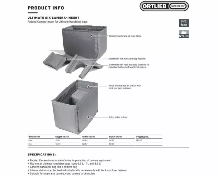 Til den professionelle fotograf, rum indeler til Ortlieb Ultimate Six styrtaske