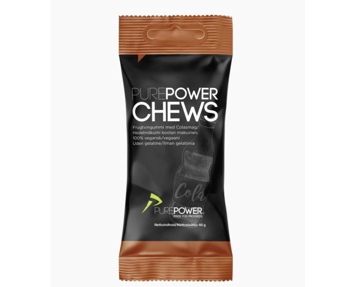 Hos PurePower kan du købe praktiske pakker med 12 styk energi chews i hver pakke. Det svarer energimæssigt næsten til en energi gel på 40 ml.