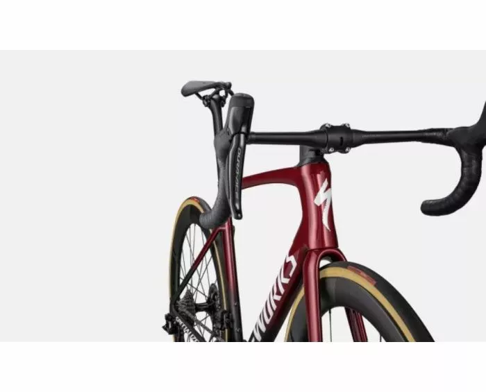Hvorfor tvinge sig selv til at vælge imellem aerodynamik og vægt, samt køreegenskaber og fart? Det er ganske simpelt. Fordi du bør du ikke. Byd velkommen til den nye Tarmac. Nedlæg højdemeter på den letteste UCI-godkendte landevejscykel, overvind sidevinden og teknisk svære nedkørsler. Vi har udnyttet vores mest avancerede teknologier, vores FreeFoil Shape Library og tilsammen udviklet en helt ny Rider-First Engineered™ ramme, som giver dig en moderne landevejscykel uden nogen kompromisser. Dagene hvor du enten skulle vælge den aerodynamiske eller den lette cykel er ovre. Den nye Tarmac er den hurtigste cykel til dato. One bike to rule them all. Til at komplimentere verdens hurtigste ramme, så er det kun de bedste komponenter, som er gode nok – hvilket også er der for, at vi netop har valgt at udstyre den nye Tarmac S-Works med Shimano Dura-Ace Di2 med et power meter, samt Roval’s nye CLX Rapide hjul, som giver dig alt den stabilitet og forøgede aerodynamik, som du efterspørger. Den nye S-Works Tarmac er en top landevejscykel – lige ud af boksen.